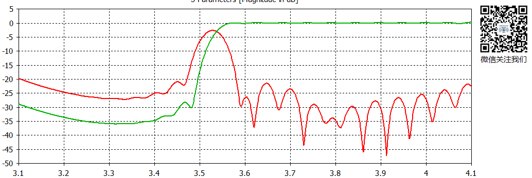 小弟最近用CSt在做一个波导形式的滤波器,通带范围@3.555GHZ—3.955GHZ,驻波1.4,损耗1dB;