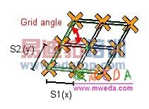 设置单元间距: S1(x),S2(y’)及Grid Angle的含义如下图: