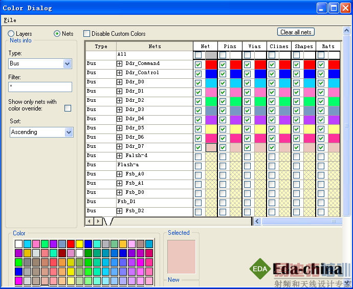 用NET显示工具将不同BUS和NET区分开,清晰显示便于走线规划,