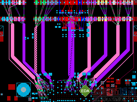 通过GRE planer, 灵活规划不同BUS的叠层和BUS之间的相对位置,近一步衡量EMI 和EMC问题. 综合各种问题,对DDR的各组BUS做出如下图规划。DDR的所有信号网络都做微带线处理,分布于3 和4层。如下图;