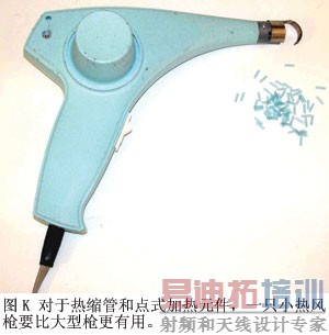 现代原型中要求紧密间隙的小电路也需要小型热缩管。对于这种需求,250W的Weller 6966C热风枪比大型枪更加有用,它能更好地适应于漆皮剥除工作(图K)。