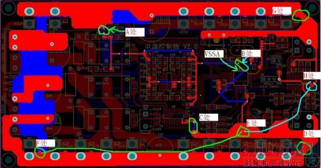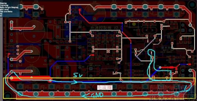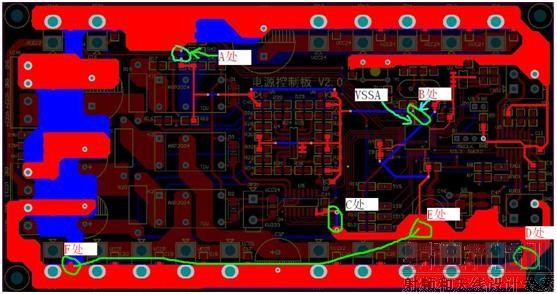 仔细检查PCB后,发现问题可能是出在地线回路,如图3所示: