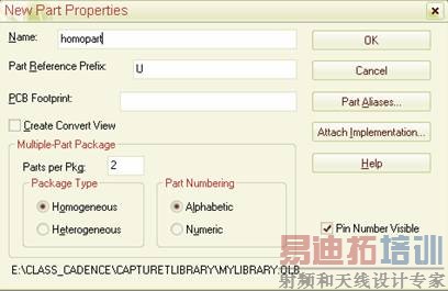 1、 选中.olb文件,右键new part,弹出new part properties对话框,填入元件名称,Parts per package填入2,package type 选homogeneous。如图