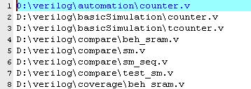 Tips: if codes are written in Verilog HDL , there is no need to adjust the sequence of the filelist , while in VHDL, some files should be compiled first , so the filelist sequence may need some adaptation.