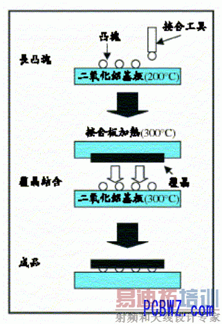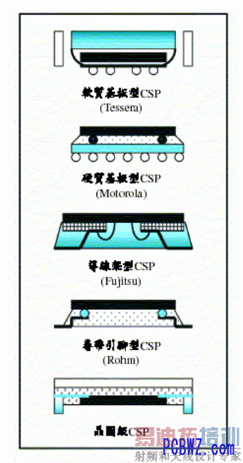 若以引脚排列方式区分,双边引脚的SOP(Small Outline Package)、四边引脚的四边平面构装(Quad Flat Pack, QFP)和底部引脚的金属罐式构装(Transistor Outline Package, TO)最为常见(图一),其引脚与构装基板的黏着设计,为能有高密度薄型化的最佳表现,又以表面黏着技术(Surface Mount Technology)为最大宗,而各家组件厂商会因应不同的组件如放大器( A m p l i f i e r ) 、振荡器(Oscillator)、混频器(Mixer).等,选取优化的封装方式以符合客户的需求而多芯片封装(Multi-chip Package)技术,同时也包括了多芯片模块封装(Multi-chip Module),为一种缩小电路体积、减短各集成电路互连( I n t e r -connection)线路距离、降低噪声干扰的封装技术。由于此封装方式将至少两片以上的芯片整合起来,并依承载基板材质的不同,而有MCM-C(Ceramic)、MCMD(Deposited Thin Film)、MCM-S(Silicon)、MCM-L (Laminate)之分(其中MCM-L主要以PC板做构装底材,成本最低),且配合减少打线影响的覆晶接合技 术(Flip-chip Bonding,图二)和缩小封装面积的芯片尺寸封装( Chip Scale Package,图三),甚而利用LTCC(Low Temperature Co-fired Ceramic)制程技术结合内藏式被动组件的设计(图四),所制成的前端(Front End)区块电路模块,更为广泛地应用在无线通信电路中,以减少独立式被动组件的使用数目,进而满足小型化、轻量化的要求。