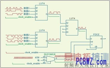 当总线上的数据与寄存器相关时,常常使用片选或时钟使能逻辑来控制寄存器的使能。进一步讲,尽早对该逻辑进行“数据使能”,可以阻止数据总线与时钟使能寄存器组合逻辑之间不必要的转换,如图 1 所示。红色波形表示原设计;绿色波形表示修改后的设计。