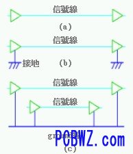 理想上信号线本身具备往与返两条线,即使对噪讯要求条件非常严苛时也是如此,因为无折返线理论上无法传输信号,虽然基于经济性考虑,电路基板上的布线数量越少越好,许多情况采用共通线设计方式,共通线最大缺点是抗噪讯特性非常弱,要求高抗噪讯特性设计时,各信号线大多使用两条线。