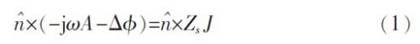 式中:为垂直于网格平面的单位矢量;j为虚部单位;ω为角频率(等于2f);A表示矢量磁位;φ为标量电位;Zs为单个网格表面的电阻;J为网格上的电流密度。在混合积分后,使用矩量法(MoM)求解网格上的电流密度J,得到网格边界线上法向方向的电流,在存储网格边界线方向电流分量后,网格内部每个点的电流值可通过网格边界线法向电流分量差值得到。