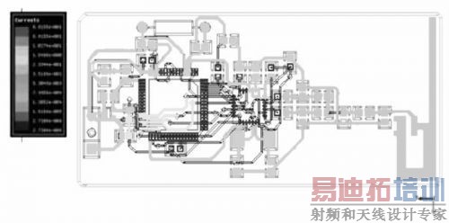 改进后,再次导入到ansoft Designer中进行分析,得到图6、7、8,此时可以发现,以前辐射区域较大区域变小或变形,受影响较大的晶振区域强度有所下降,对周围元件的影响也相应减弱,系统的抗电磁干扰能力得到提高。