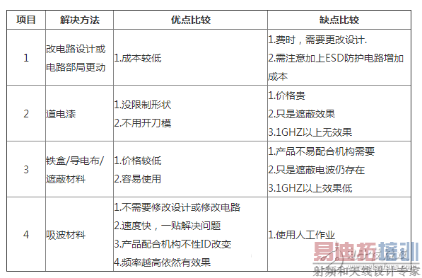 以下就常用EMI对策加以比较