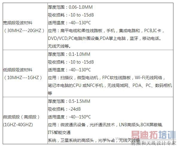 以下为不同频率段的吸波材料的选择