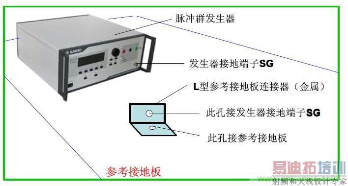 ③ 试验仪器(包括脉冲群发生器和耦合/去耦网络)放在参考接地板上。试验仪器用尽可能粗短的接地电缆与参考接地板连接,并要求在连接处的阻抗尽可能地小。