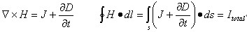 Maxwell的第四方程式也称作Ampere定律。此方程式说明了产生磁场的两个来源。第一个来源是,电流以传输电荷的形式在流动。第二个来源是,当变动的电场环绕着一个封闭的电路时,会产生磁场。这些电和磁的来源,说明了电感和电磁的作用。在此方程式中,J就代表以电流产生磁场的分量;就是以电场产生磁场的分量。