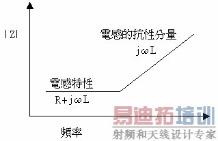 电感是用来控制PCB内的EMI。对电感而言,它的感抗是和频率成正比的。这可以由公式:XL = 2πfL来说明,XL是感抗(单位是Ω)。例如:一个理想的10 mH电感,在10 kHz时,感抗是628Ω;在100 MHz时,增加到6.2 MΩ。因此在100 MHz时,此电感可以视为开路(open circuit)。在100 MHz时,若让一个讯号通过此电感,将会造成此讯号质量的下降(这是从时域来观察)。和电容一样,此电感的电气参数(线圈之间的寄生电容)限制了此电感只能在频率1 MHz以下工作。