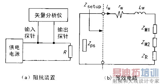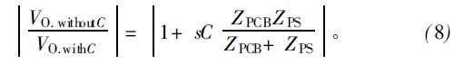 Zsetup和k的值可通过一个用已知电阻代替ZPS等效电路求得。由此ZPS可由式(4)求出,阻抗变化范围20~120Ω。把PCB电路板代替ZPS接入图3中,PCB的输入阻抗为:![]()