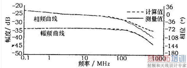 图5 耦合网络传递函数的测量和计算结果