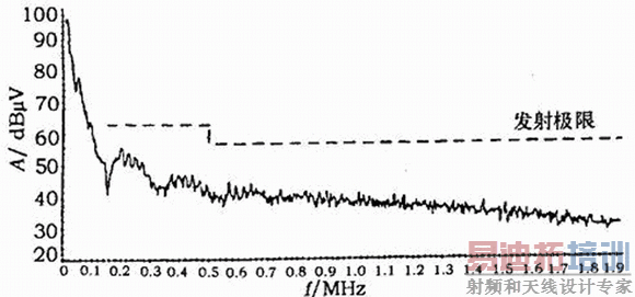 测量电磁辐射时,需要知道CAN-H到频谱分析仪的传递函数。射频耦合网络和频谱分析仪的输入阻搞具有高通滤波的特性,转折频率与公式(1)的结果相同,通常衰减约为15 dB,因而把该值加到频谱分析仪的读数上,才能得到CAN-H线上电磁辐射的直正值。