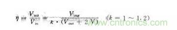 效率分析当输入电压范围为220 V±10%时,整流滤波后的电压为Vin±10%。串联型稳压电路要求Vin-10%-Vout>dV。dV为输入输出最小压差,对双极型调整管,dV>2 V。效率: