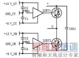 (3)每个IGBT门极驱动采用独立电源供电,如图3,并且采用-8V的反向偏置电压,以避免噪声骚扰。