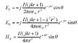 辐射干扰由天线发射,由于通电的导线和电缆可视为等效天线,因此汽车电子设备的线束辐射干扰非常严重。根据Maxwell方程,典型单极天线的辐射电磁场为