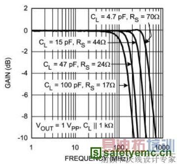 图4 利用串联输出电阻隔离容性负载 驱动容性负载
