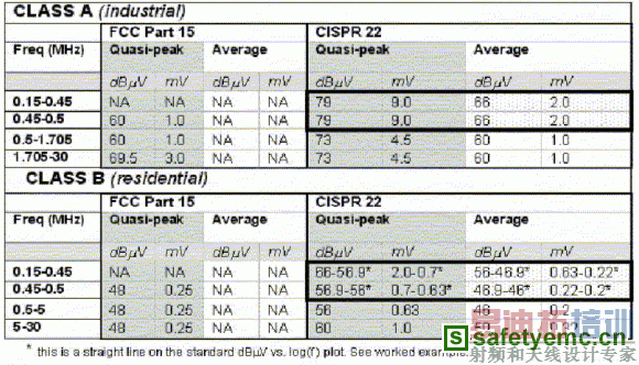 必须注意的是,FCC并没有规定平均的限制值,只规定了准峰值(quasi-peak,QP)。虽然,FCC有认可CISPR 22的限制值。但是,FCC不允许两者混用或并用。设计者必须择一而从。不过,以目前的情况来看,FCC Part 15势必会逐渐和CISPR 22完全一致的。