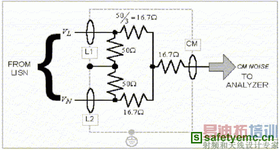 图三:一个CISPR LISN的简易电路图