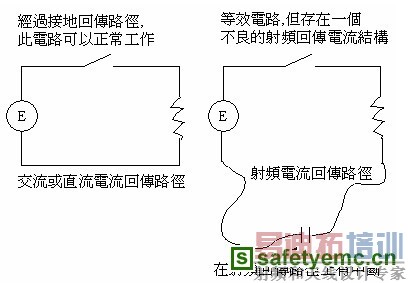 Maxwell方程式、Kirchhoff和Ampere定律全部都在说:若要使一个电路正常工作或依期望的目的工作,一个封闭回路型网络必须要存在。附图四表示了这样的典型电路。当一条走线从来源端到达负载,一个回传电流路径也必须要存在,这是Kirchhoff和Ampere定律所规定的。