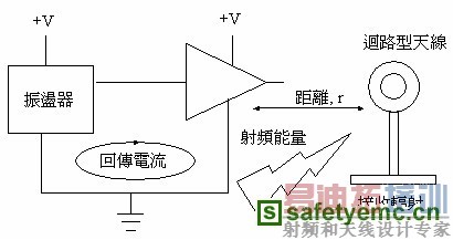 在附图二中,一个电路包含有一个频率源(振荡器)和一个负载。我们可以看到有一个回传电流(return current),在此电路沿着封闭回路流动着。这个封闭回路是由PCB走线和射频电流的回传路径组成的。我们可以利用仿真软件,来建立此讯号走线的模型,并评估此模型所产生的辐射电场。此回路所产生的电场是下面四个变量的函数。