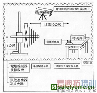 • EMS自动测试控制系统(电脑及其介面单元) • EMI测试接收机(或频谱分析仪) • 各式发射、接收天线