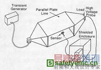 因此,当其内部电场较强时,应将其放在电磁隔离室内,或在其开放之侧面布置适当之可移动吸波材料墙。当频率进一步提高时,板间将出现高次模,使板间电磁场发生畸变,一般把出现高次模之频率定为平行板线之上限频率。当待测件置于平行板时,原来之均匀电场将发生畸变,为此通常规定待测件之体积应小于两板中间体积之1/3。与一般采用辐射天线对待测件进行电场辐射耐受性试验相比,平行板线有下列优点:可在宽频段范围内产生平面波场;所有能量集中在平行板间,因而电磁能量利用率高,不需很大瓦特数之功率讯号放大器就可在板间产生高于25V/m之场强(车辆零组件规格);平行板线之造价与其它产生场强,用以进行电磁耐受性试验之方法和装置相比,成本较低。其主要缺点是:仅适用于如车辆零组件等小型设备之试验,对周围之辐射较为严重,影响监测仪器之功能及操作人员之健康。这些缺点限制了应用,从1980年以来,平行板线已逐渐被横电磁波室所取代,但在电磁脉冲(EMP)研究中,仍将其作为场强模拟装置。