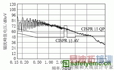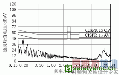 图2中两条灰线分别为CISPR 15中规定的准峰