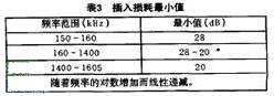 GB17743—1999标准规定的插入损耗限值限值如表3所示,所有测量频点的插入损耗检验值大于表中限值才能判定为合格。