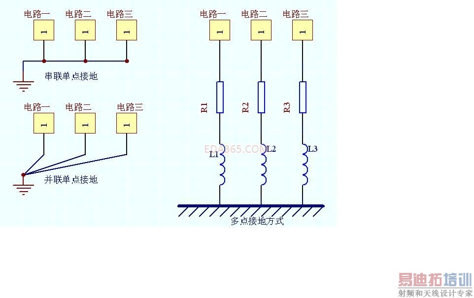 看了这段文字不是很清楚单点并联接地和多点串联接地的区别,请各位大大帮忙解释下,最好能给个示意图什么的,谢谢