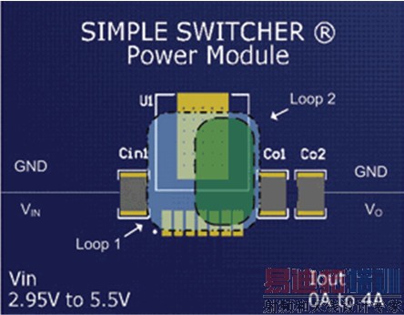 将PCB布局中的电感降至最低,有以下两大好处。第一,通过促进能量在Cin1与CO1之间的传输来提高元件性能。这将确保模块具有良好的高频旁路,将高di/dt电流产生的电感式电压峰值降至最低。同时还能将器件噪声和电压应力降至最低,确保其正常操作。第二,最大化降低EMI。