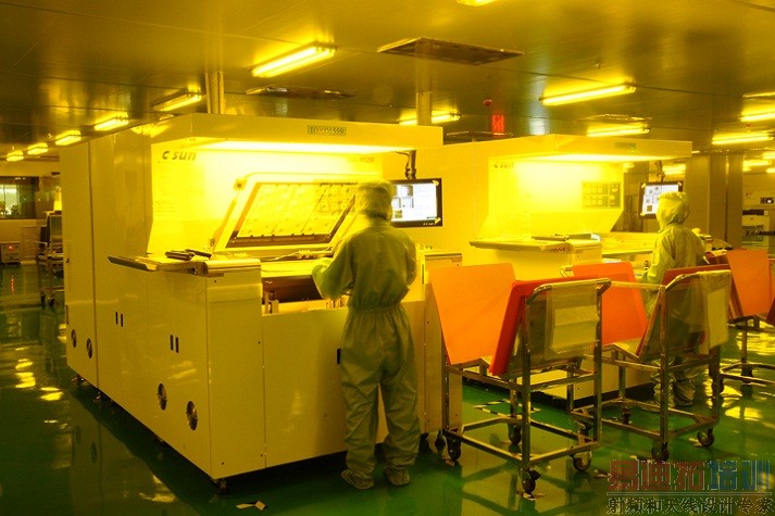 这个房间里面黑色的就是菲林,也就是底片。线路板菲林的制作是通过电脑将GERBER原图打印到空白底片上,此时的图形是模糊,需要通过显影把图形显出来,此为线路板第一次“照相”过程。