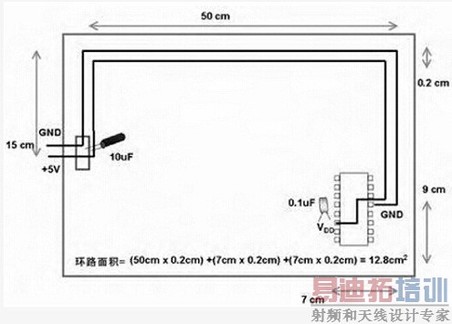 上图通过改进——电源与地线靠近走线,减小了回路面积,降低了电磁干扰(679/12.8,约54倍)。因此,电源与地尽量应该靠近走线!而信号线之间则应该尽量避免并行走线,降低信号之间的互感效应。
