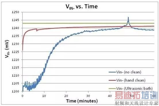 未清洁的电路板出现了DC错误、超长趋稳时间以及严重的外部噪声收集;