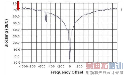 这种干扰抑制主要是改进射频装置的选择性和阻隔特性,选择性是描述射频装置在其它RF频谱中选择所需信号的能力。阻隔特性则描述IC器件忽略干扰或干涉信号,同时仍然接收所需RF信号的能力。在初期选择过程,谨慎的工程师将密切关注射频装置的选择性和阻隔特性。通常,这些参数被忽略,而RF系统性能受到影响。除了选择具有强大的阻隔特性的射频装置,还有其它用于抑制近带和宽带干扰的方法。一个常用的方法是在接收器天线和RF前端之间添加一个SAW滤波器,这就具有带通效应,可让所需的信号以极小的衰减进入射频装置,同时使得干扰因素的衰减增加。一个433.92MHz SAW滤波器的典型带通特性如图1所示。