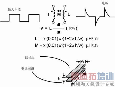 图6 如果不注意走线的放置,PCB中的走线可能产生线路感抗和互感。这种寄生电感对于包含数字开关电路的电路运行是非常有害的。