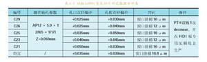 可激光钻孔的粘结片制作专用HDI试板,通过激光钻孔试验测试、评估LDP的激光钻孔以及成孔的效果,并与我司当前使用的普通FR4粘结片的HDI盲孔(如表2-1所示)做比对,以检验其对HDI盲孔的改良效果。