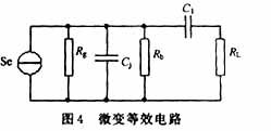 当给定输入光照度时要在负载上取到最大功率输出时,要求满足RL=Rb和g<。此处,Cj为光电二极管结电容,Rg为内阻, Se为光电流。RL是前置放大电路的输入电阻。在设计中考虑到为从光电二极管中得到足够的信号功率和电压,RL和Rb不能太小。根据其微变等效电路可得 RL和Rb过大又会引起高频截止,频率下降,降低了通频带宽度。