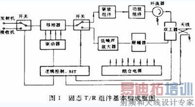 随着雷达技术的发展,有源相控阵雷达成为主流,而其核心则是T/R组件,通常每部雷达含有成千上万只T/R组件。T/R组件不论其使用频率是否相同,也不论其使用场合是否相同,其基本构成是相同的,主要是由功率放大器、驱动放大器、T/R开关、移相器、限幅器、低噪声放大器、环流器、逻辑控制电路等组成,其结构框图如图1所示(1)。这些基本构成,在工艺实现时,部分可以直接做在电路板上,如微带传输线、开关、耦合器、滤波器等,部分采用外贴芯片(如功放、驱放等)、电容、环流器等来实现。因此,从使用功能和结构上,T/R组件实际上可以看作是一种具有收发功能的微波多芯片模块。