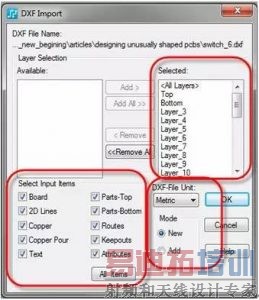 图 5:PCB设计工具(如这里介绍的PADS)需要能够使用DXF格式控制所需的各种参数。