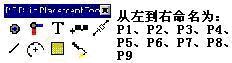 其中:P1是焊盘放置工具、P2是过孔放置工具、P3是文字放置工具、P4是坐标放置工具、P5是尺寸放置工具、P6是线条放置工具、P7是园弧放置工具、P8是填充放置工具、P9是阵列粘贴设置工具,下面我们简单说明这些工具的使用方法: