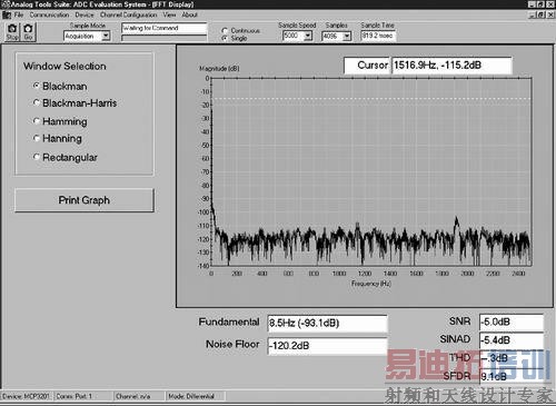 其它系统噪声源可能来自时钟源或电路中的数字开关。如果这种噪声与转换过程有关,它不会作为转换过程中的干扰出现。但是,如果这种噪声与转换过程无关,采用FFT(快速傅立叶变换)分析,可以很容易发现这种噪声。