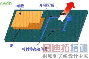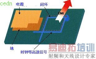 时钟信号等高速信号网络,在多层的PCB走线的时候产生了闭环的结果,这样的闭环结果将产生环形天线,增加EMI的辐射强度。