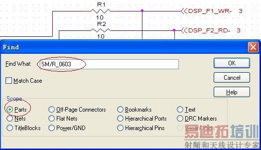 第二步:在Find What 处添上你需要替换的封装名称,例如现在修改:SM/R_0603,在Scope 选择框中选择:Parts,然后点击OK;