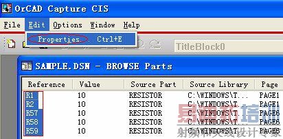 第四步:在弹出的窗口中,选中你需要编辑的器件位号,然后选择菜单EDIT->Properties…,或者直接用快捷键Ctrl+E;