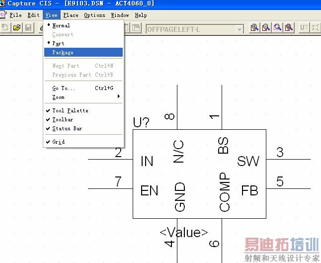 然后我们在编辑元件界面中,我们选择PACKAGE,